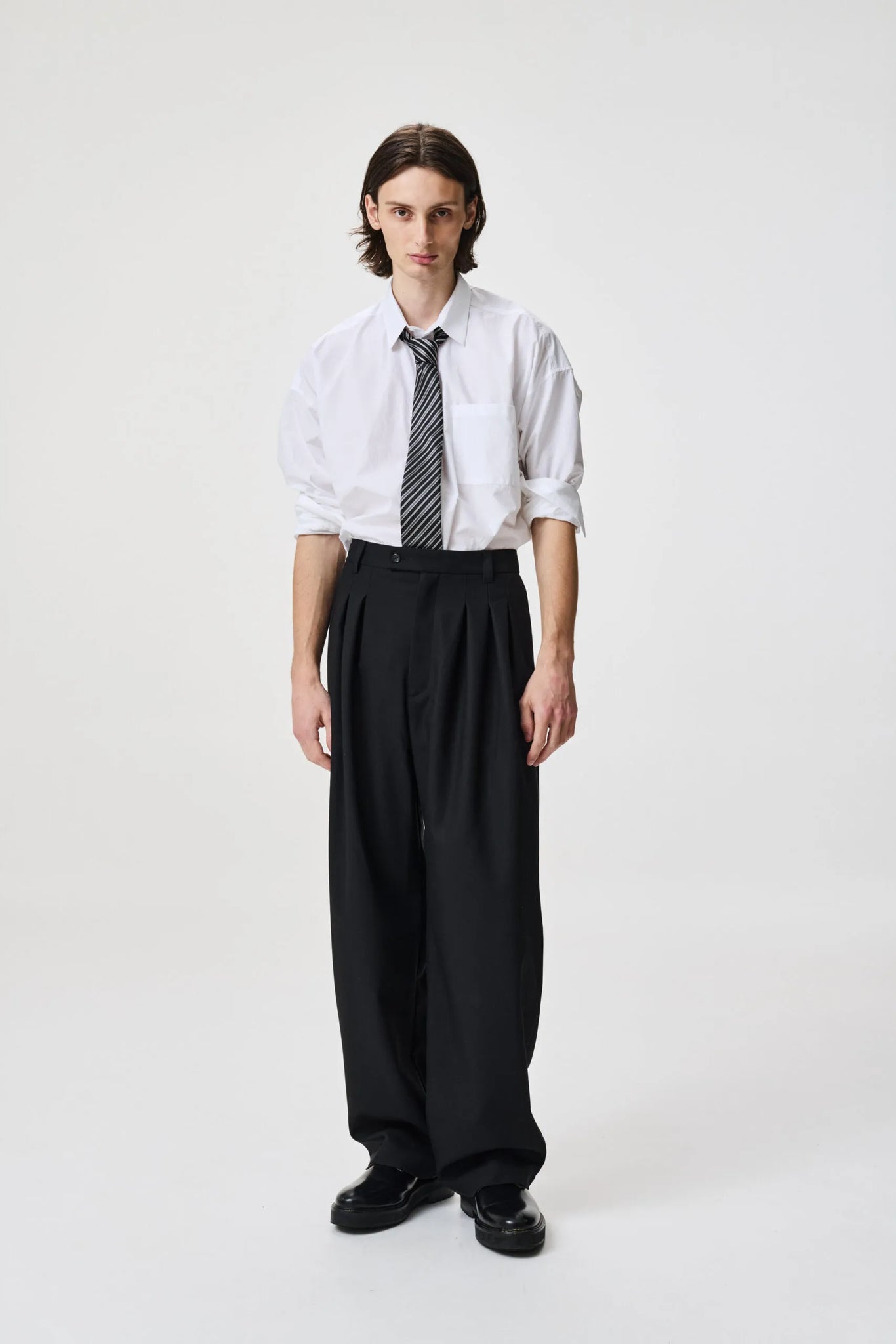 Triple pleated wide trouser with a softly tapered leg