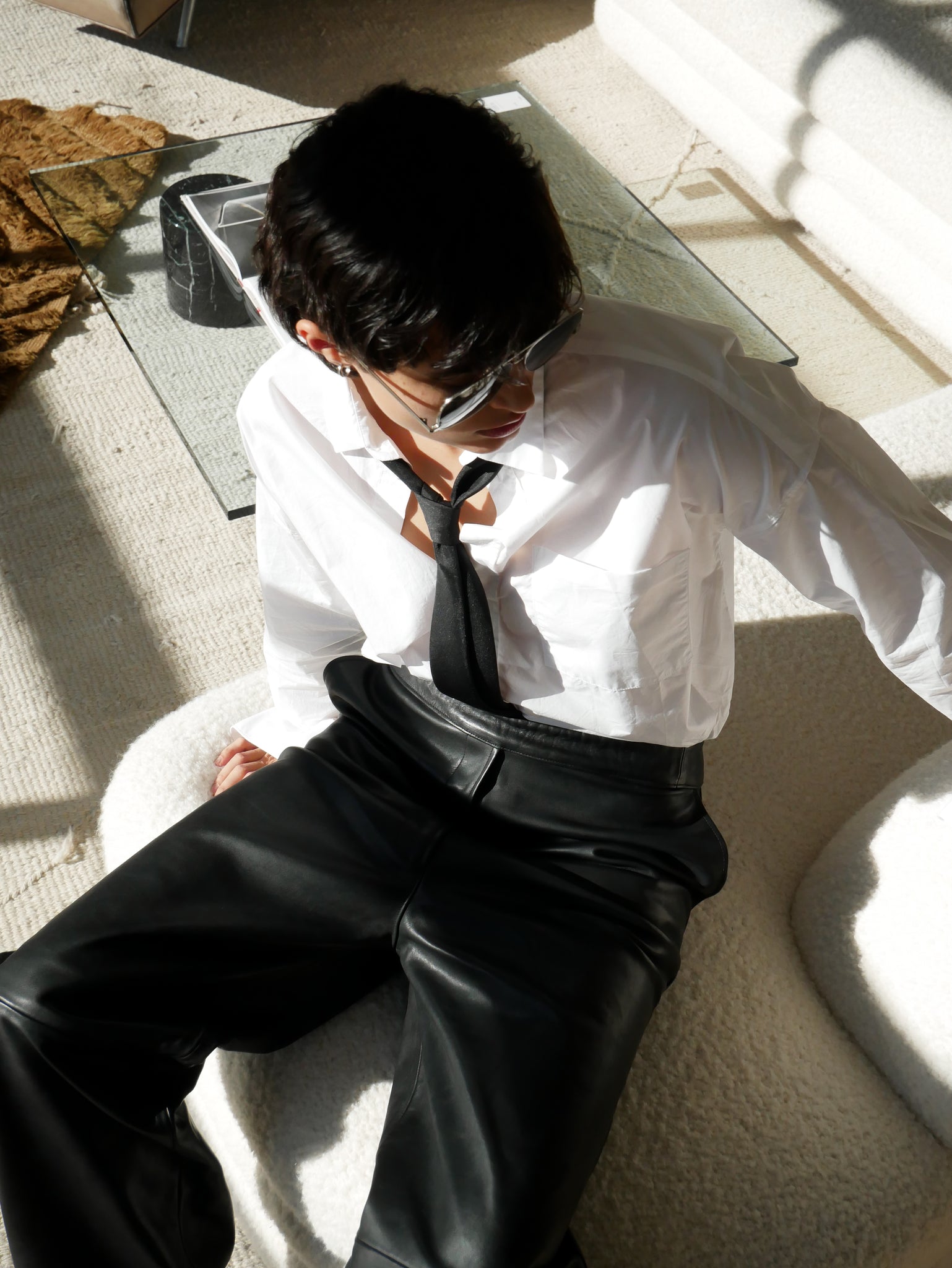 Isabella is captured also wearing The Rham Shirt in White and The Long Tie by ADNYM.