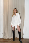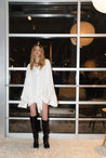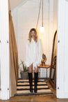 Madelyn is captured also wearing The Spikelet Necklace in Gold by Bevza.