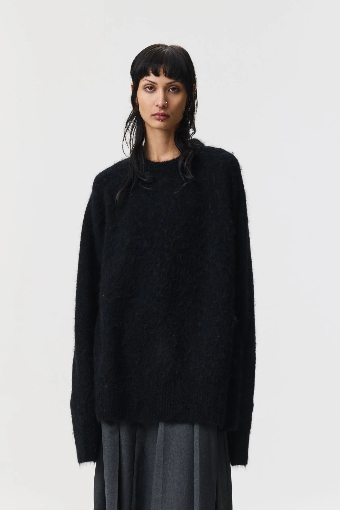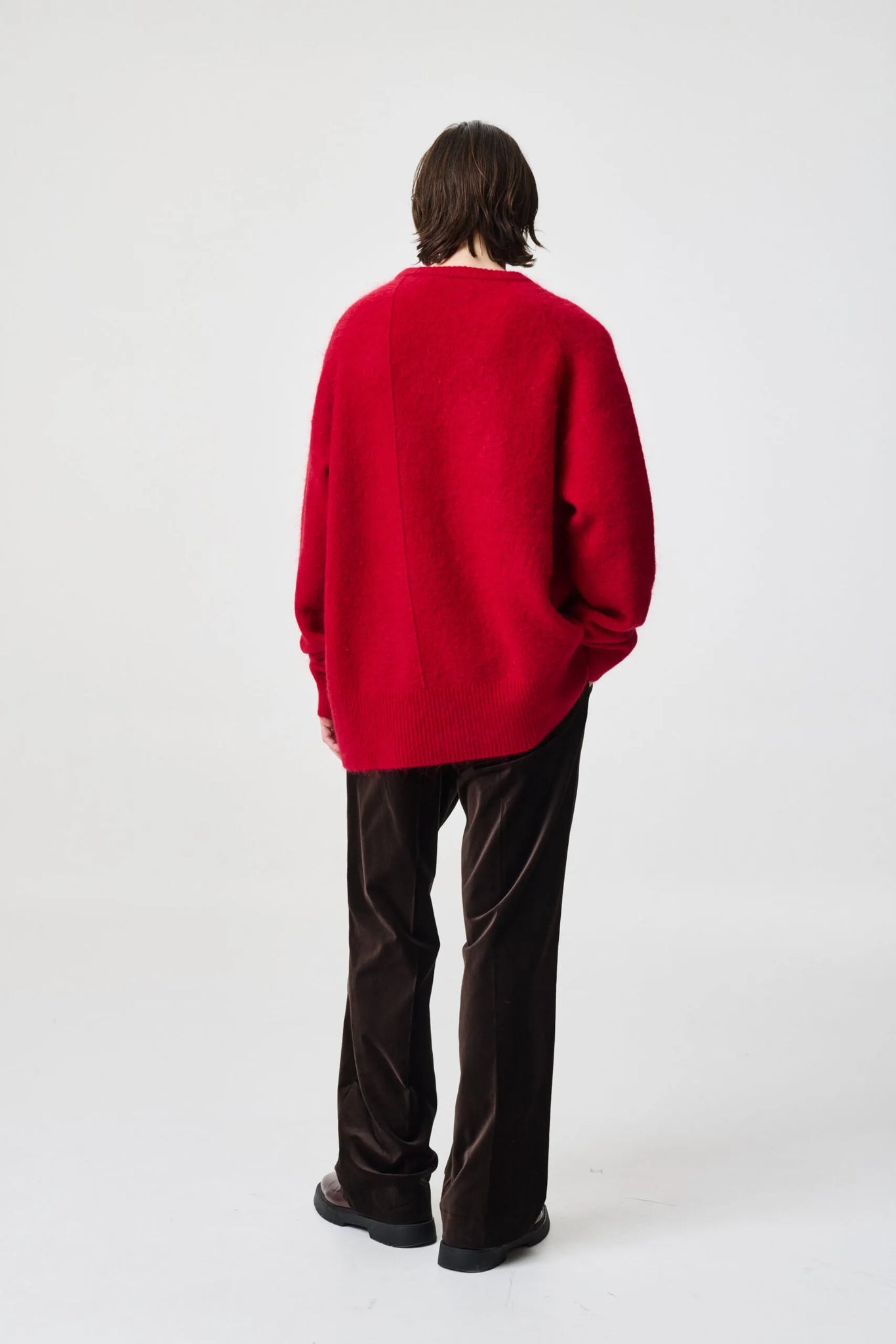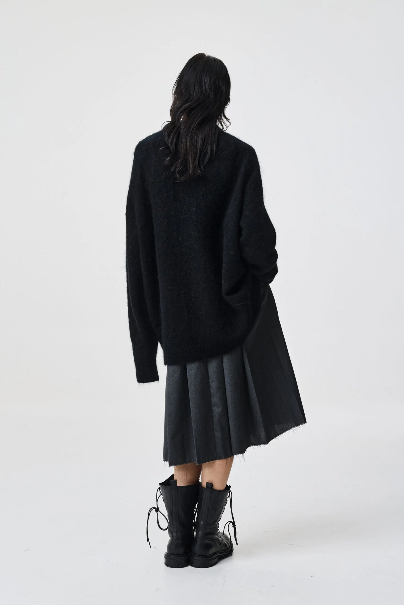 Oversized saddle shoulder knit with cut&sewn seam at the back