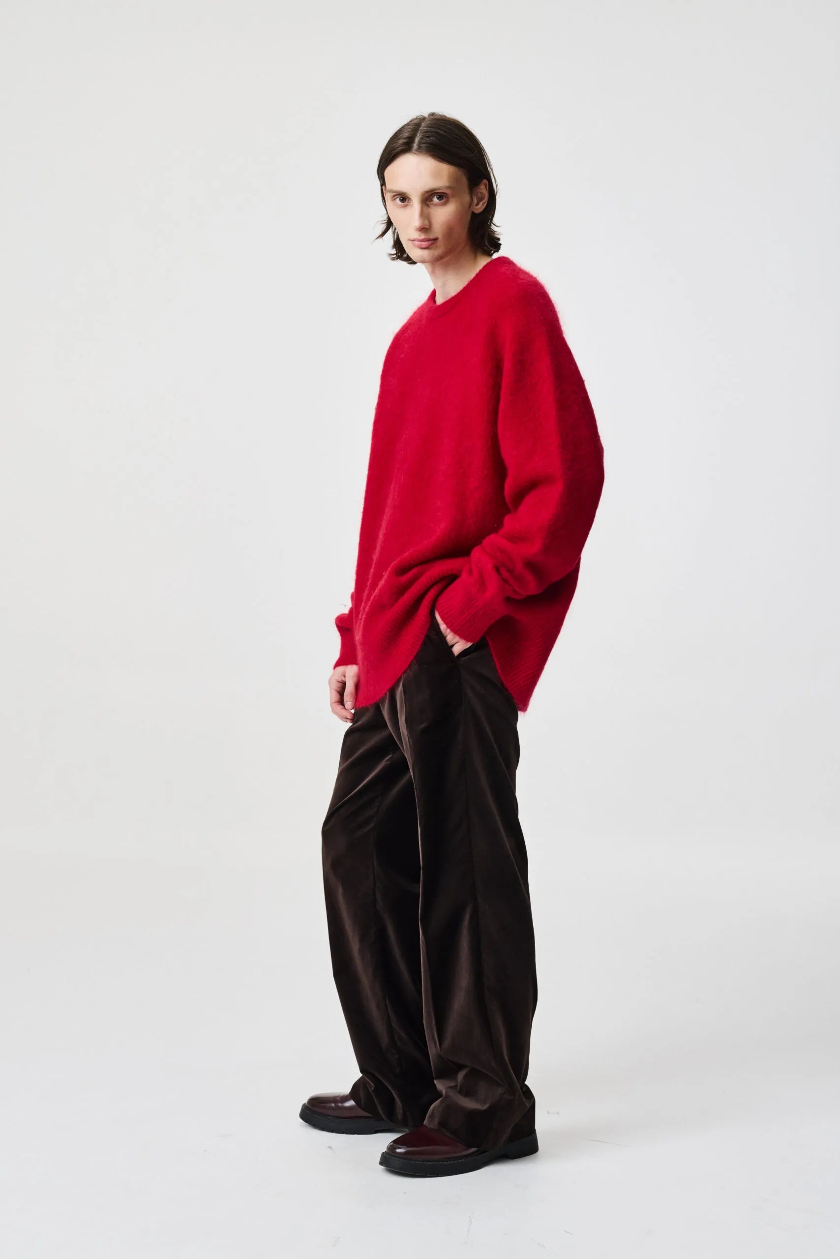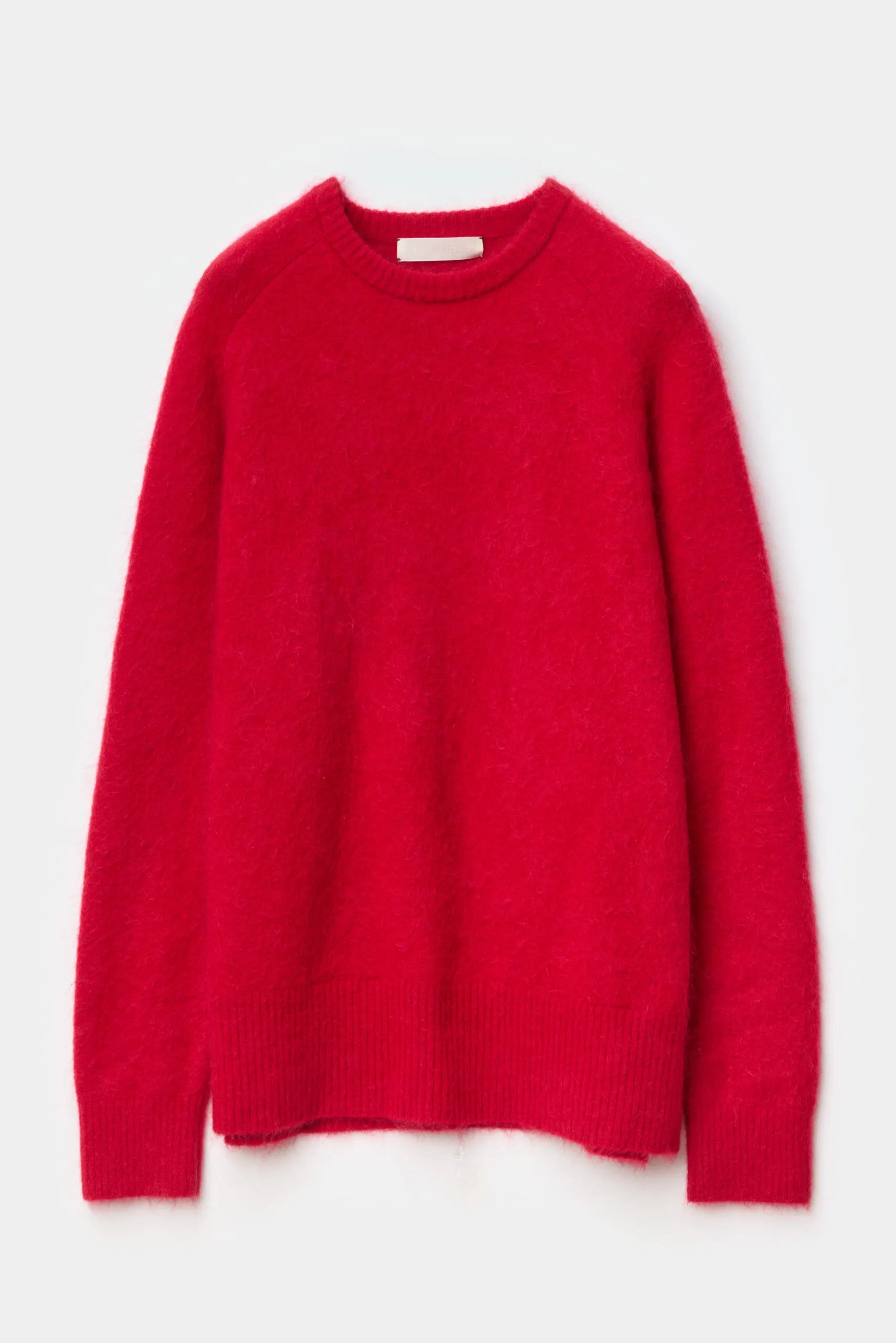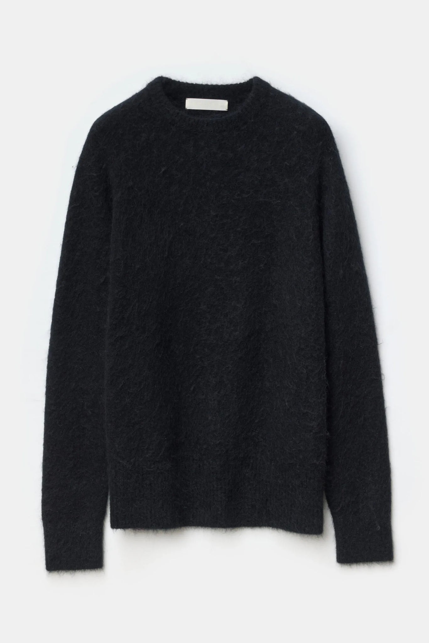 Oversized saddle shoulder knit with cut&sewn seam at the back