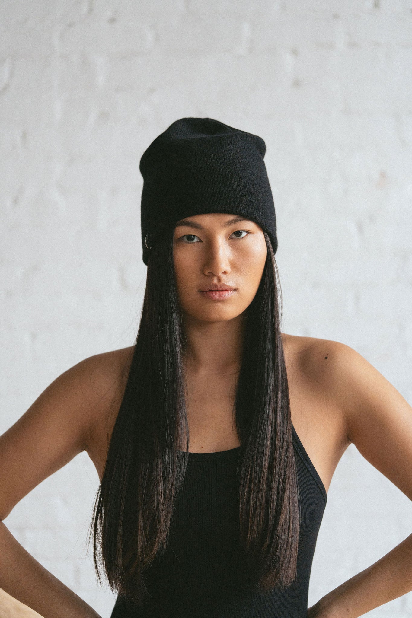 Indulge in luxurious warmth with the Black Cashmere Beanie. Made with soft, premium cashmere and designed by designer, Amina Hood, this winter essential will keep you cozy and stylish.