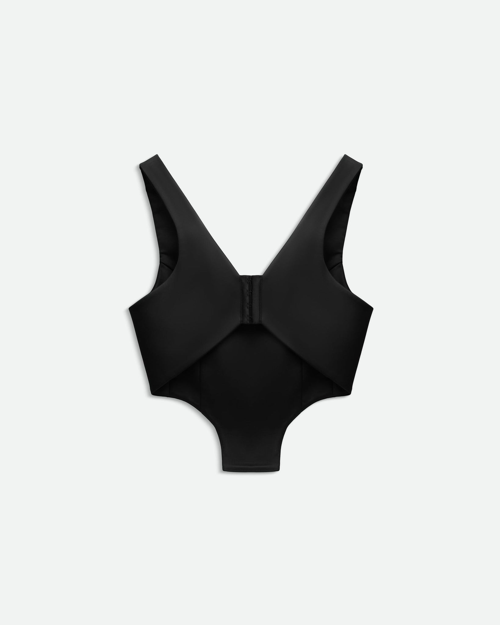 The close-fit is complemented by a bra-style closure at the back.