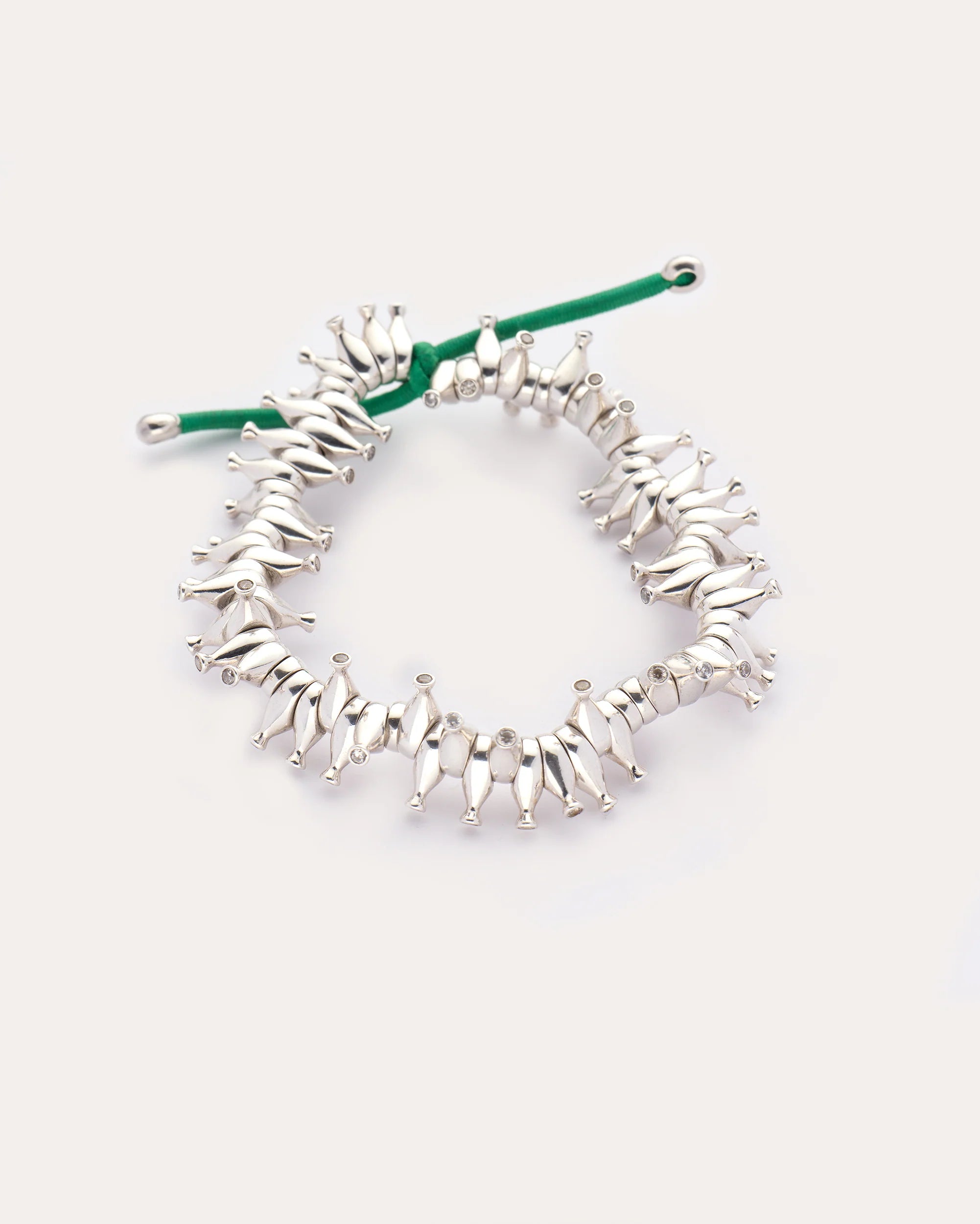 The piece is handcrafted from 925 silver and encrusted with cubic zirconia.